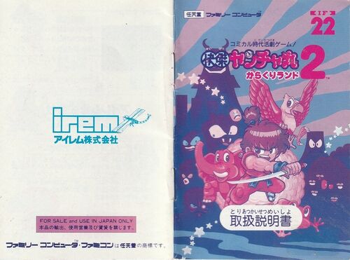 『快傑ヤンチャ丸2 からくりランド』 1991年発売/ファミリーコンピュータ/アクション/アイレム株式会社 前作とは異なりライフ制に。忍者らしく忍術も使えるようになり、攻撃手段も増えたことで全体的な難易度はかなり下がっている。どこが悪いというわけ…