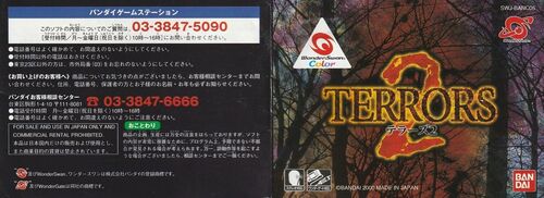 『テラーズ2』 2000年発売/ワンダースワン/アドベンチャー/株式会社バンダイ アイドル×ホラーのテキストアドベンチャー第2弾。独自性のある「テラーズポイント」などのシステムはそのまま、ワンダースワンカラーとワンダーゲートに対応している。全3話+短…