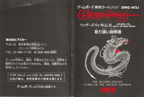 『ウィザードリィ・外伝Ⅱ 古代皇帝の呪い』 1992年発売/ゲームボーイ/RPG/株式会社アスキー 日本製のオリジナル『ウィザードリィ』第2弾。相変わらずの高難度ながら理不尽さを抑えるバランス調整がされており、東洋の香り色濃い独自の世界設定も良い雰囲…