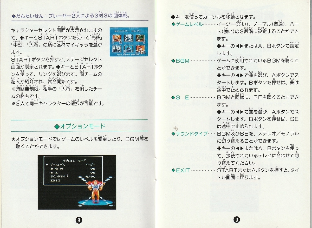 対戦格闘のようなジャンプ技が無いわりに、キャラが小さく迫力が無い。スカスカの画面上部には吹き出しで技名が出る。