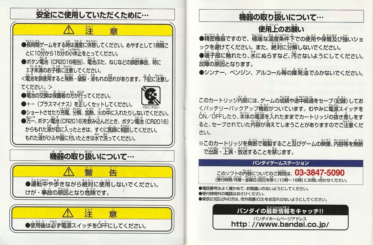1998年発売/ゲームボーイ/シミュレーション/株式会社バンダイ