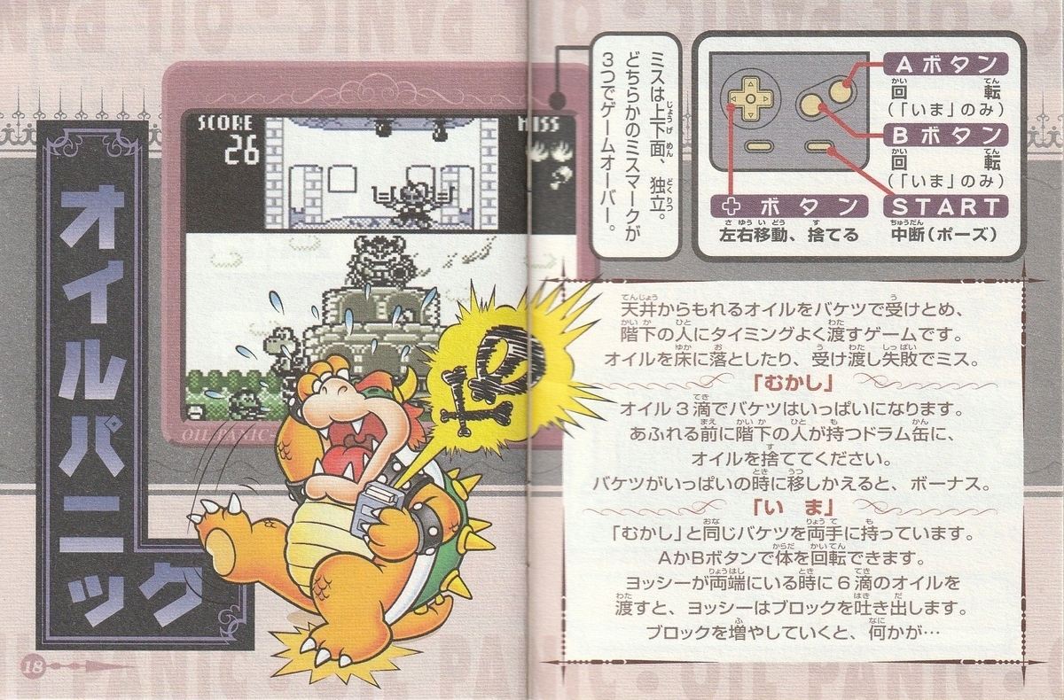 ゲーム&ウオッチのオイルパニックはDSのような2画面だったが、うまい具合に1画面に収めている。