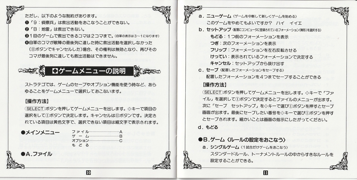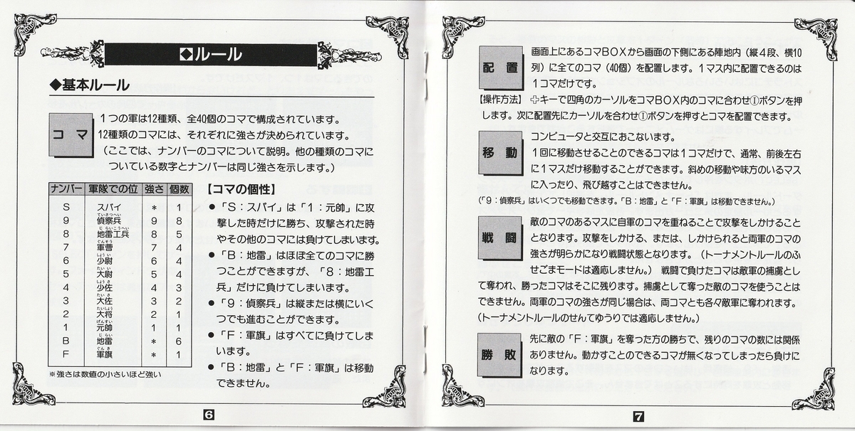 ストラテゴとは要は海外の軍人将棋で、元帥・大将・大佐・スパイといったコマを陣地に並べ(コマはチェスのような立体で、自分にだけ見えるようにコマの種類が書かれている)、コマの移動、または隣接する敵コマへの攻撃を1ターンずつ交互に行っていくというもの。相手陣地にある旗を先に倒せば勝利となる。軍人将棋と違い、コマ同士が戦った時はおたがいにコマの正体を見せ合うため、審判役がいらないのが特徴。