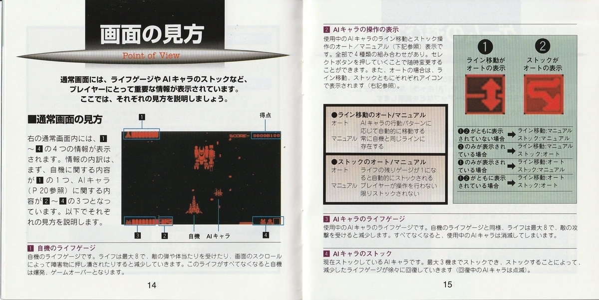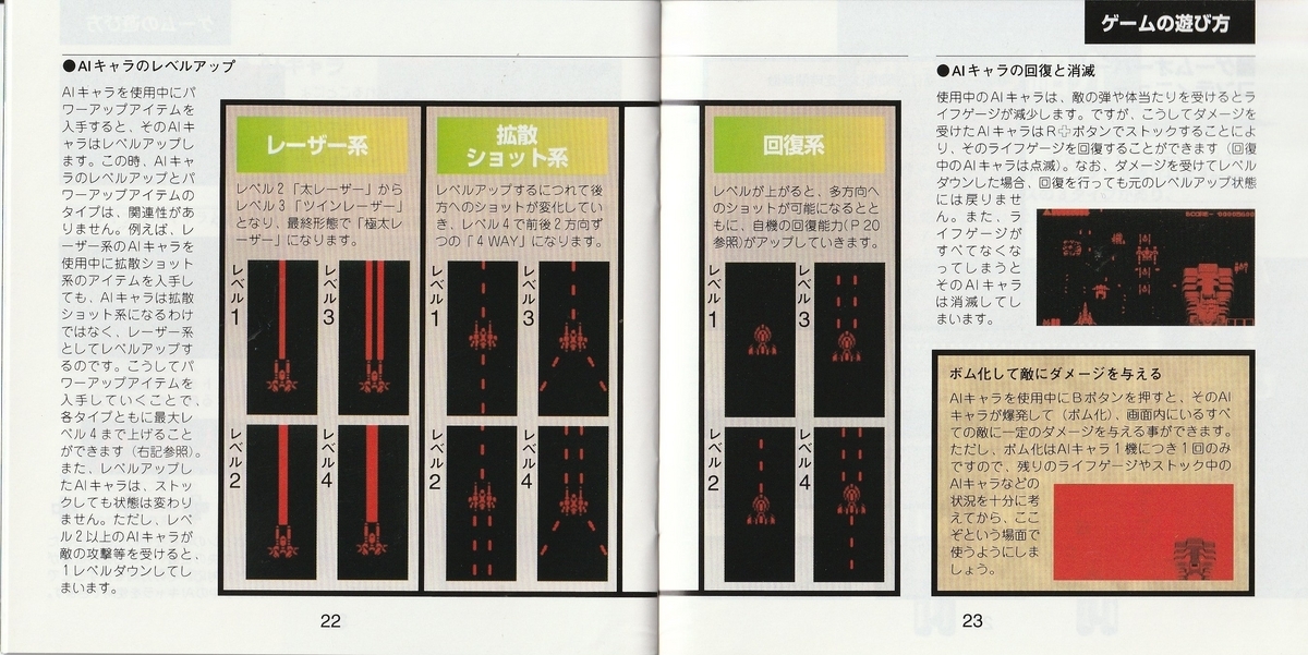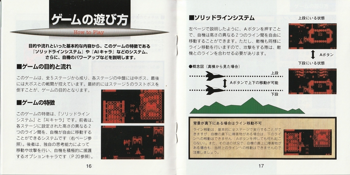 ハドソン謹製の縦スクロールシューティング。自機を手前側(上段)と奥側(下段)に軸移動することができる「ソリッドラインシステム」が特徴で、異なる軸からの攻撃であれば避けることができる。「AIキャラ」と呼ばれるオプションは、名前の通り自動的に攻撃してくれるのでなかなか頼もしい。やや敵の弾が見づらいという欠点はあるが、バーチャルボーイならではの1作と言える。
