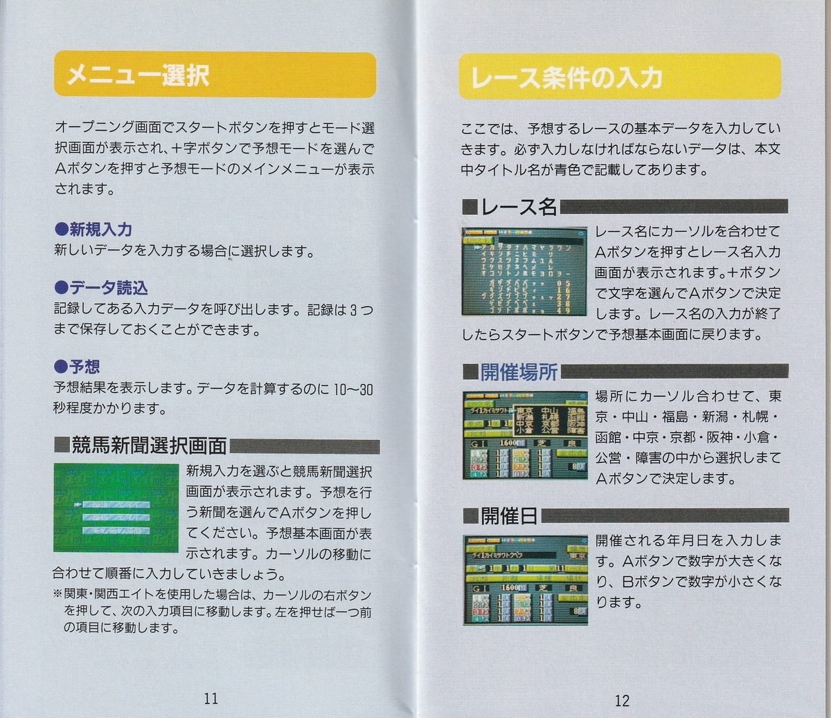 サンケイの競馬新聞、競馬エイトとタイアップした予想ソフト。データ入力項目にオッズや人気順がなく、総収益金があるのが珍しいかもしれない。う~ん、オッズくらいは参考にしてもいいのでは? ゲーム内のレースを予想するパーティモードもあるが、そんなもんやる暇があったら実際の競馬を予想した方が盛り上がるのでは。