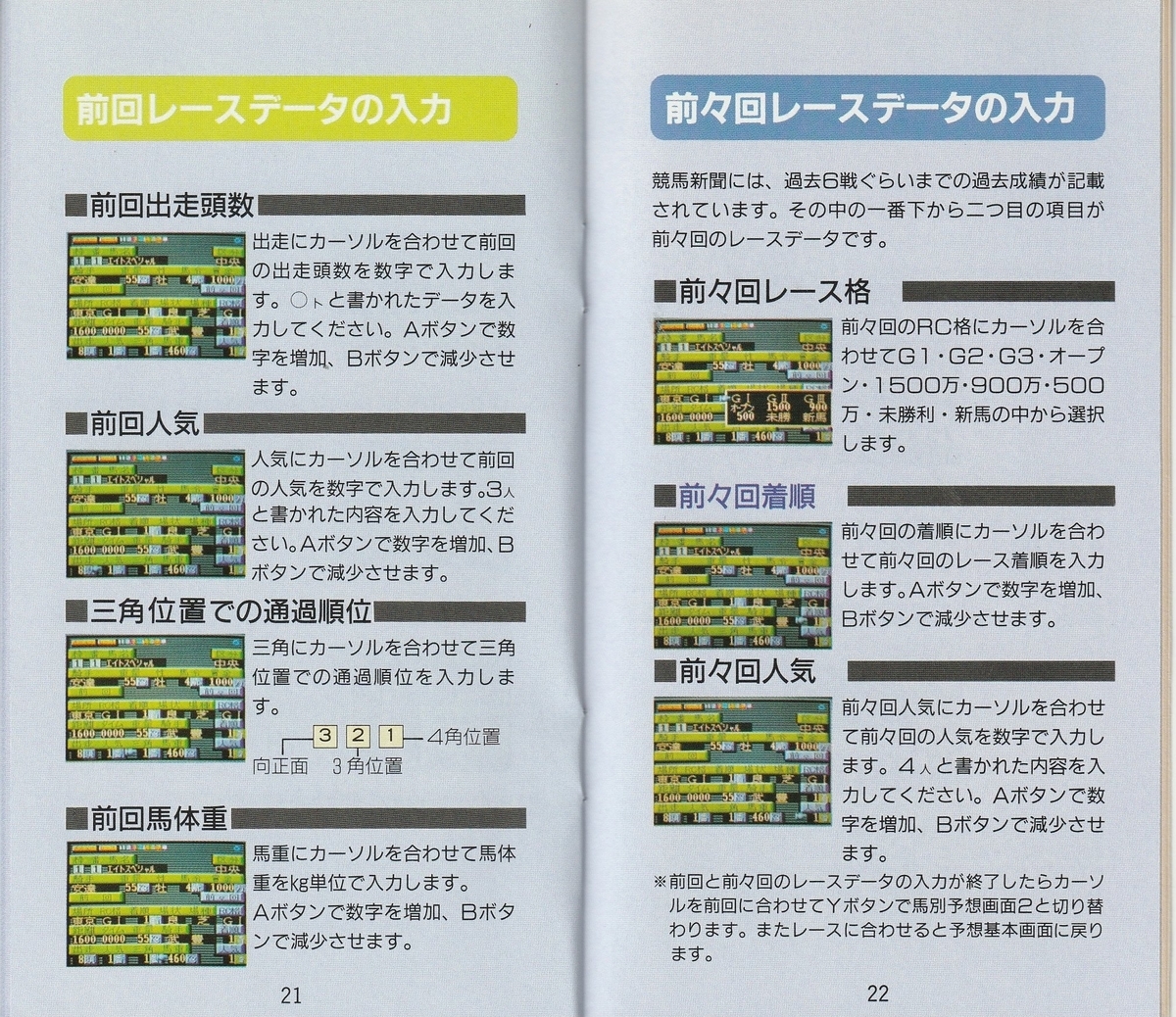 騎手名を登録する項目もあるが、当然ながら今現在では役に立たない。他の競馬予想ソフトだと「騎手の実力・有名度」を入れる、等になっていたりするのだが。