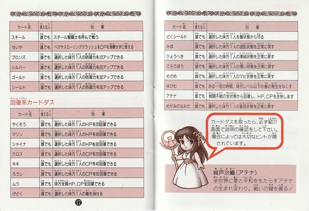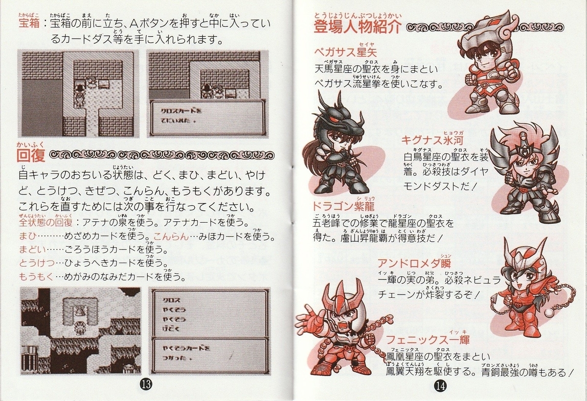 『聖闘士星矢』を原作としたRPG…に見えるが、正確に言えば『聖闘士星矢』を原作としたカードダス「セイントパラダイス」のゲーム化作品である。なので『聖闘士星矢』本編のストーリー再現度はわりと大雑把。敵のエンカウント率がアホほど高いことを除けば、まあ普通のRPGである。