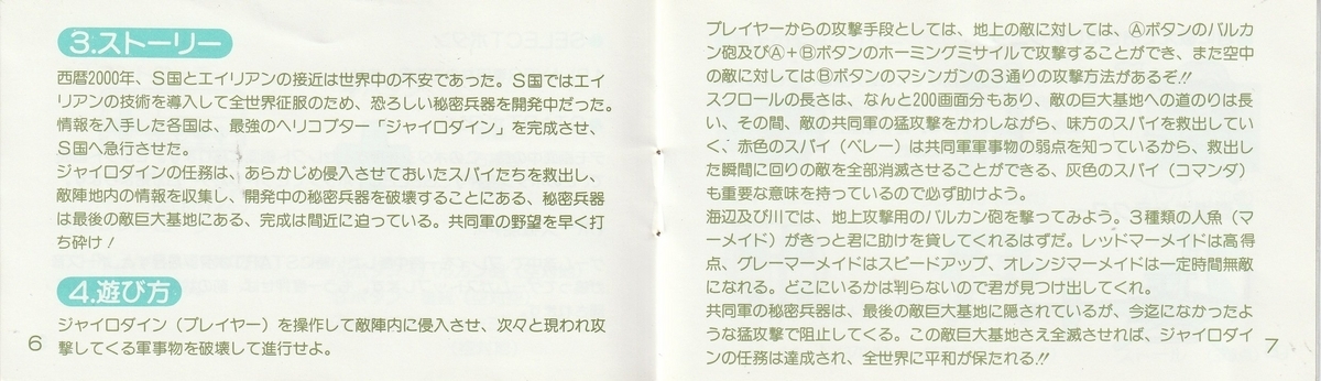 対空・対地攻撃を使い分ける『ゼビウス』タイプの縦シューティング。プレイヤーは戦闘ヘリだが、なぜか隠しキャラの人魚を取るとパワーアップする。