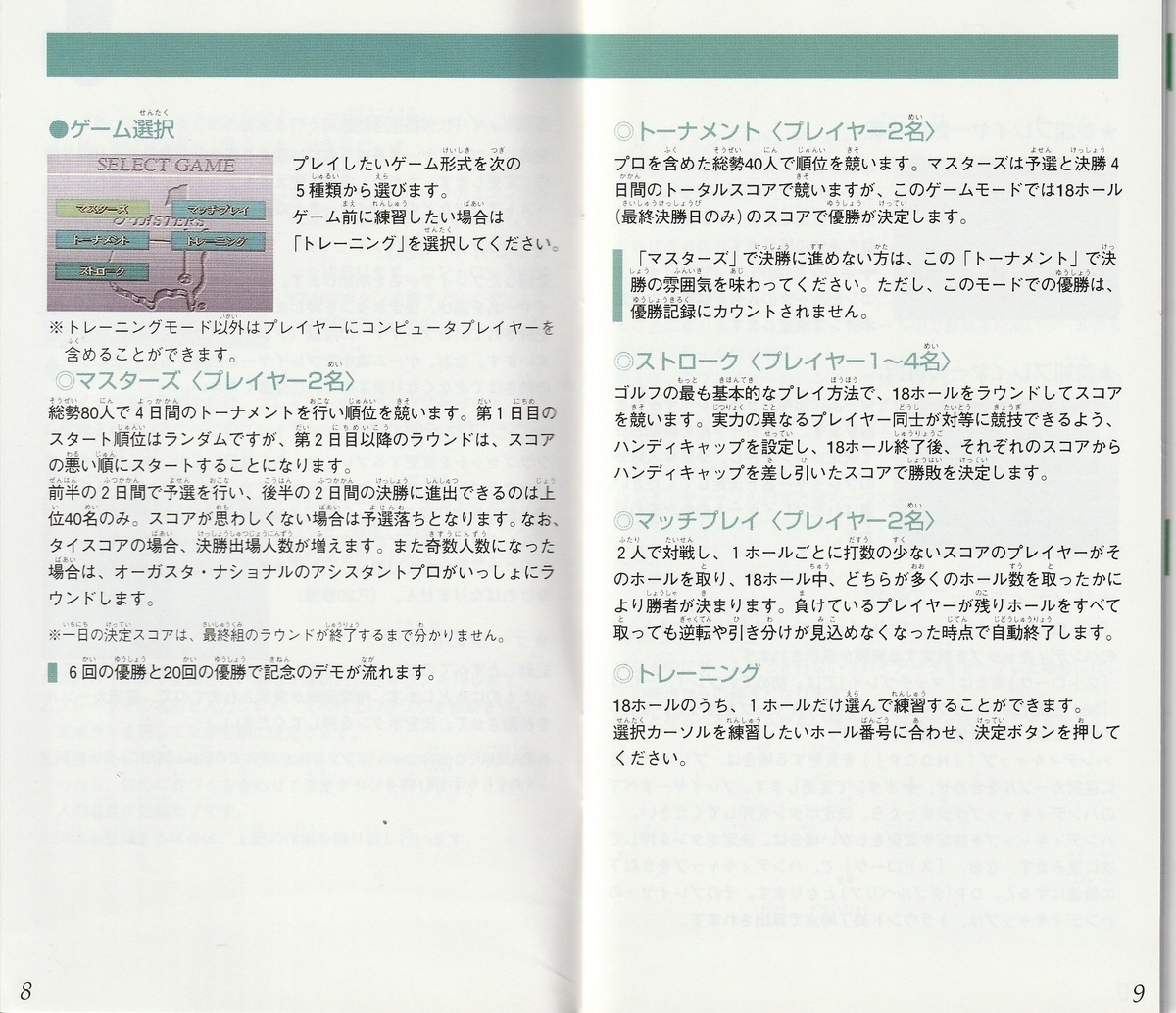 3DO版の移植作で、スーファミ版はSA-1チップを搭載している。さすがグラフィックは力が入っていると感じる出来。ボールのインパクト位置の決定が、パワー決定と同じくスッキリしたゲージ形式に変更されているほか、細かいシステムがいろいろとブラッシュアップされている。ただまあ、コースは当然ながらいつものオーガスタである。