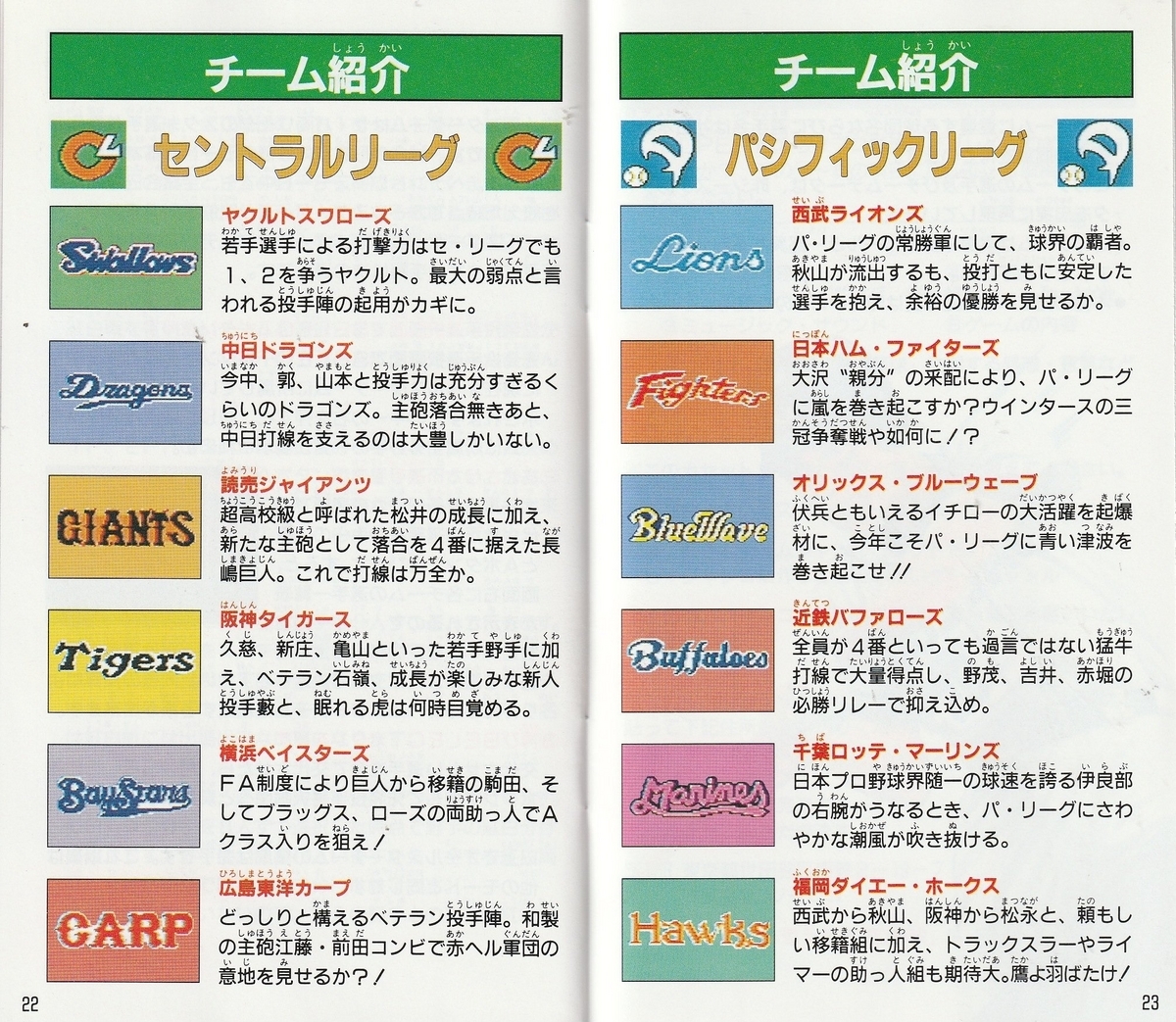 スーファミの『燃えプロ』としては唯一の作品。選手のグラフィックは実写さながらで、イチローの振り子打法、野茂のトルネード投法といった特徴的な選手のフォームをしっかり再現しているのがウリ。また、守備や走塁のみならず打撃すらオートにすることが可能。操作は難しく、なかなかヒットは出ないしランナーは妙に足が速いしでCPU相手だと苦戦する。全部オートに任せた方がマシかもしれない。